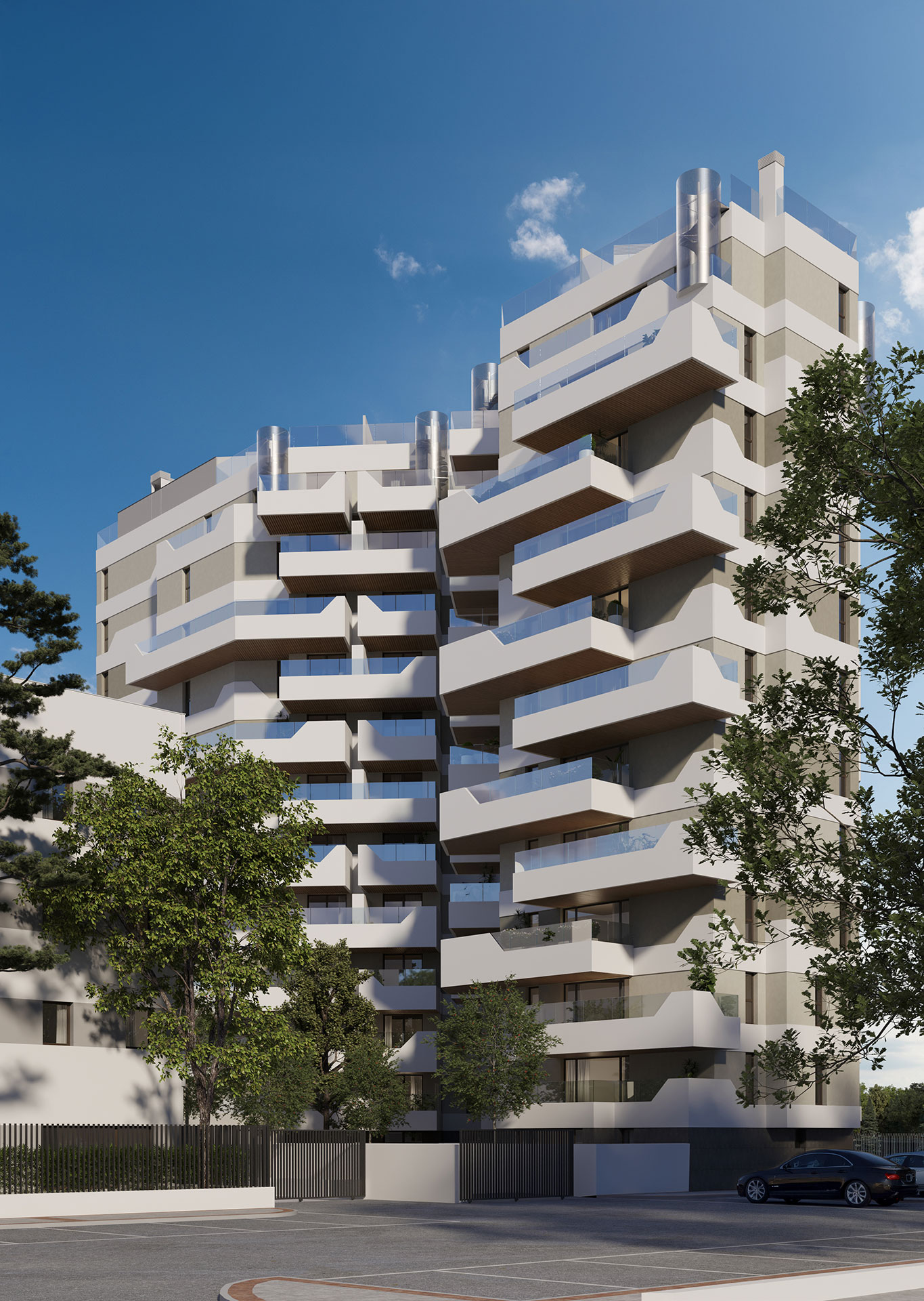 Un diseño único, capaz de integrarse en el corazón de Sevilla con personalidad. Sus líneas sencillas, sus volúmenes sólidos y sus terrazas singulares le dan un carácter innovador y atractivo a la vez de elegante.